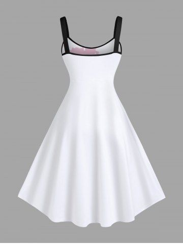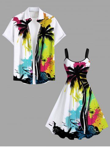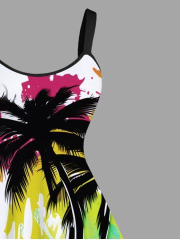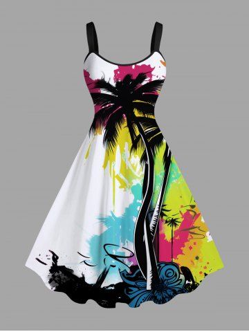 Plus Size Coconut Tree Painting Graffiti Print Hawaii A Line Tank Dress - White - 1x