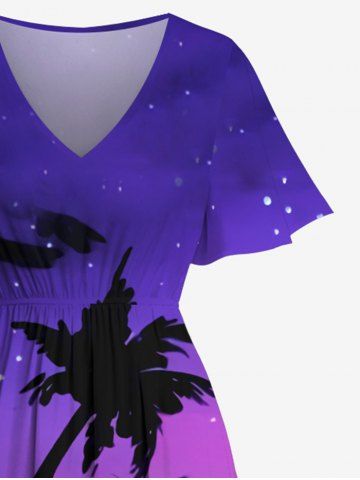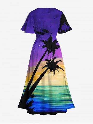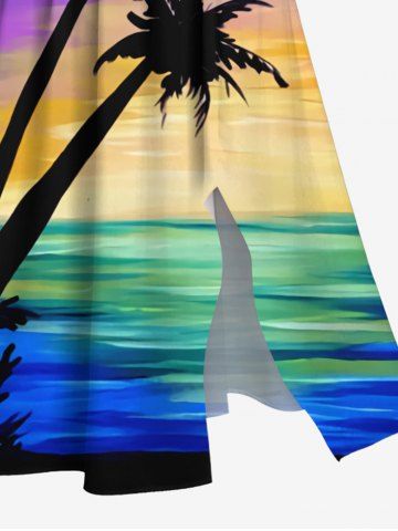 Plus Size Coconut Tree Painting Sea Ombre Galaxy Print Hawaii Split Pocket A Line Midi Dress - Multi-a - 6x