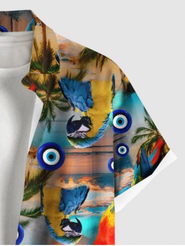 Plus Size Coconut Tree Parrot Ombre Dusk Print Hawaii Button Pocket Shirt For Men - Deep Yellow - 5xl