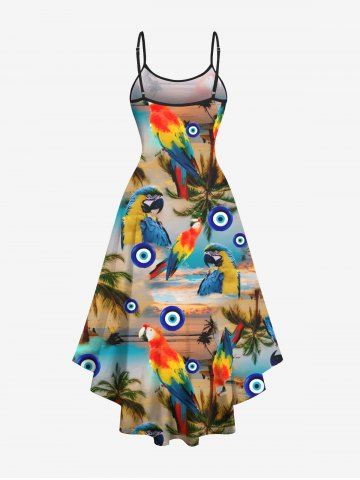 Plus Size Coconut Tree Parrot Ombre Dusk Print Hawaii High Low Asymmetric Cami Dress - Deep Yellow - 1x