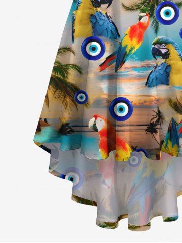 Plus Size Coconut Tree Parrot Ombre Dusk Print Hawaii High Low Asymmetric Cami Dress - Deep Yellow - 3x