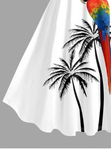 Plus Size Coconut Tree Parrot Print Hawaii Tank Dress - White - Xxs
