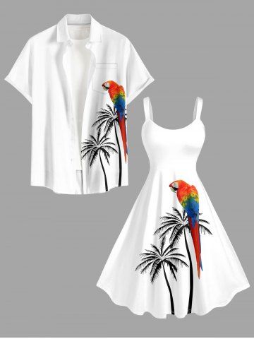 Plus Size Coconut Tree Parrot Print Hawaii Tank Dress - White - 3x
