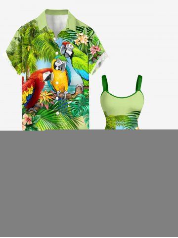 Plus Size Coconut Tree Parrot Tropical Leaf Print Hawaii A Line Dress - Green - Xs
