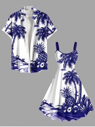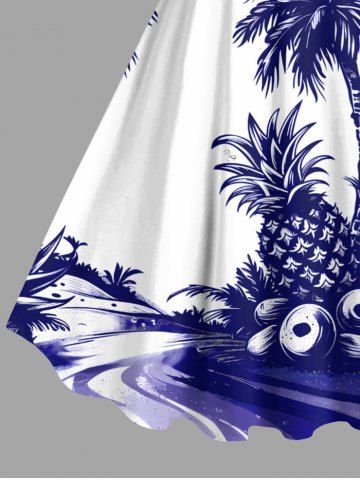 Plus Size Coconut Tree Pineapple Cloud Print Hawaii Tank Dress - White - 2x