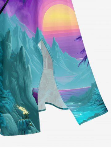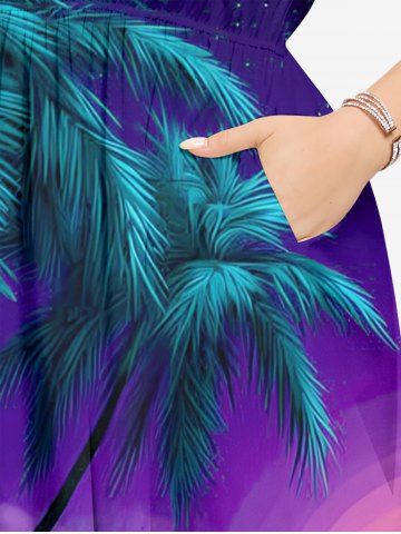 Plus Size Coconut Tree Planet Galaxy Mountain Print Hawaii Split Pocket A Line Midi Dress - Peacock Blue - Xxs