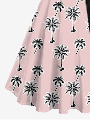 Plus Size Coconut Tree Print Buttons Turn Down Collar Hawaii Dress With Belt - Light Pink - 3x