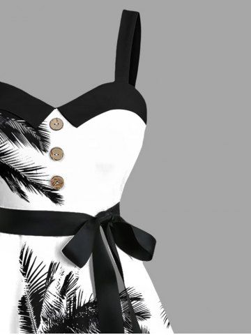Plus Size Coconut Tree Print Buttons Turn Down Collar Hawaii Dress With Belt - White - 2x