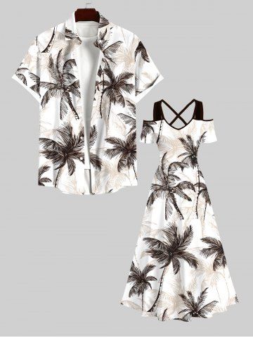 Graphic Dresses > Plus Size Coconut Tree Print Cold Shoulder Crisscross Hawaii Maxi Dress