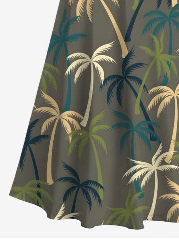 Graphic Dresses > Plus Size Coconut Tree Print Cold Shoulder Crisscross Hawaii Maxi Dress