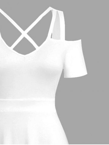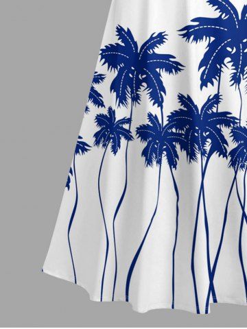 Plus Size Coconut Tree Print Cold Shoulder Crisscross Hawaii Maxi Dress - White - 3x