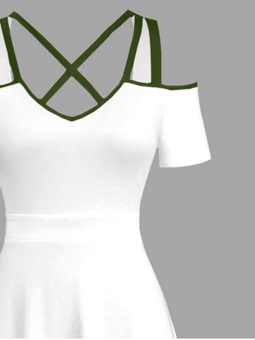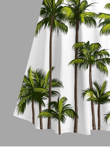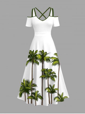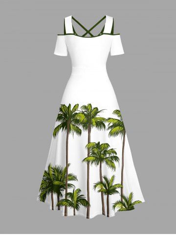 Plus Size Coconut Tree Print Cold Shoulder Crisscross Hawaii Maxi Dress - White - 3x