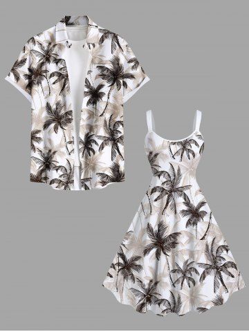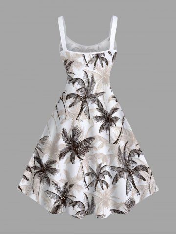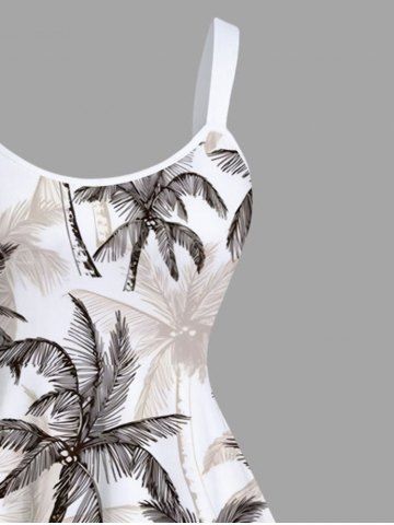 Plus Size Coconut Tree Print Hawaii A Line Tank Dress - White - 3x