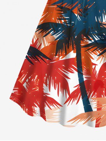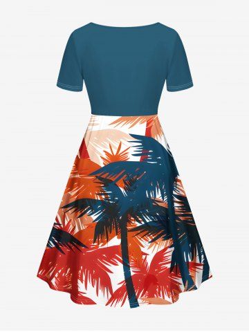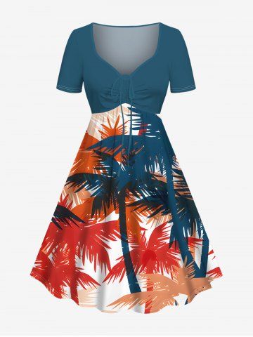 Graphic Dresses > Plus Size Coconut Tree Print Hawaii Cinched Dress