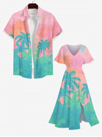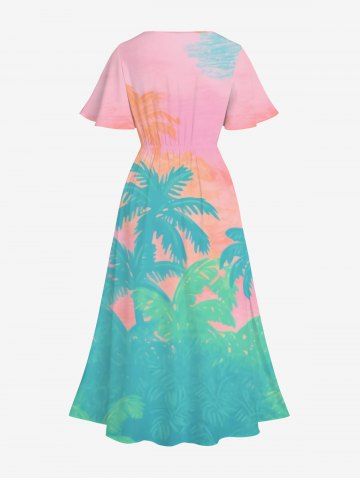 Plus Size Coconut Tree Print Hawaii Ombre Split Pocket A Line Midi Dress - Multi-a - Xs
