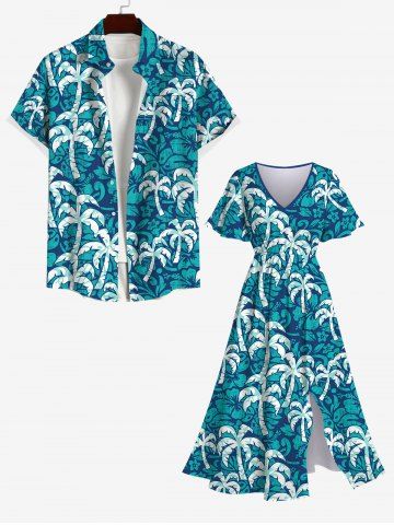 Coconut Tree Print Plus Size Matching Hawaii Beach Outfit For Couples