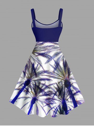 Plus Size Coconut Tree Print Hawaii Tank Dress - Purple - 2x