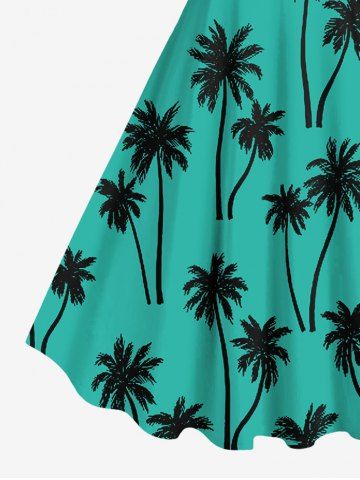 Plus Size Coconut Tree Print Hawaii Tank Dress - Green - 2x