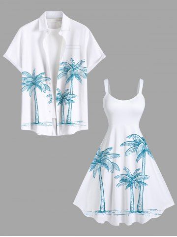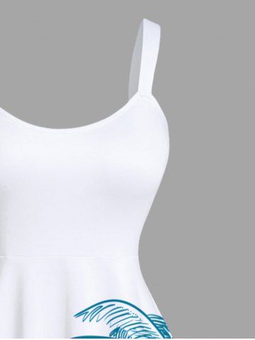 Plus Size Coconut Tree Print Hawaii Tank Dress - White - 3x