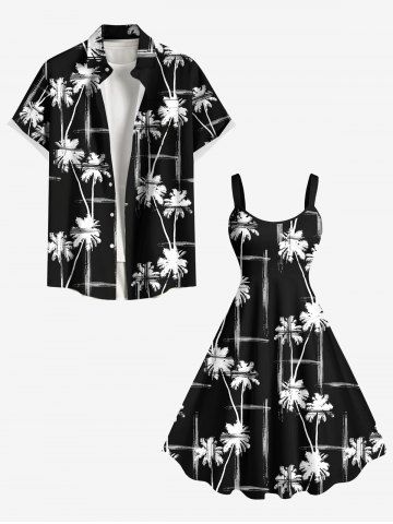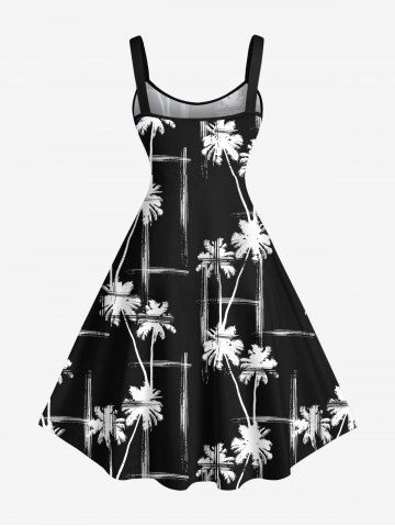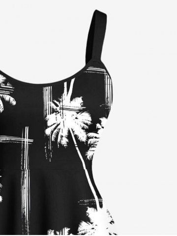 Plus Size Coconut Tree Print Hawaii Tank Dress - Black - 1x