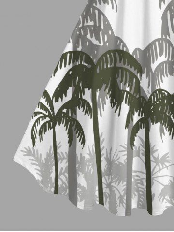Plus Size Coconut Tree Print Hawaii Tank Dress - White - S