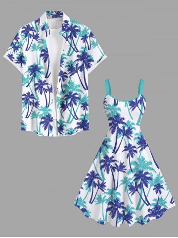 Plus Size Coconut Tree Print Hawaii Tank Dress - White - S