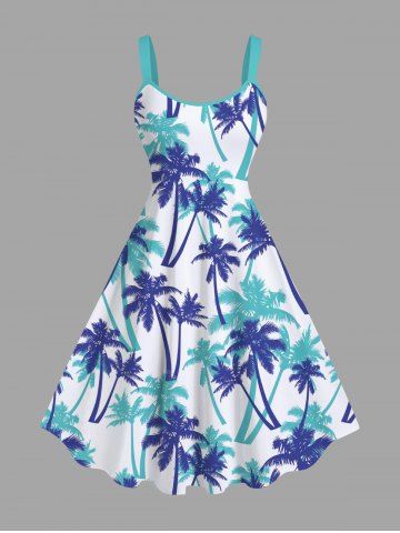 Plus Size Coconut Tree Print Hawaii Tank Dress - White - 4x