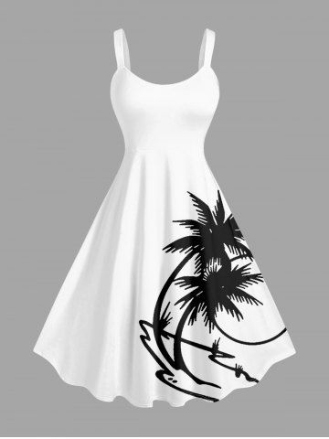 Plus Size Coconut Tree Print Hawaii Tank Dress - White - M