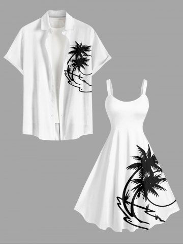 Plus Size Coconut Tree Print Hawaii Tank Dress - White - 3x