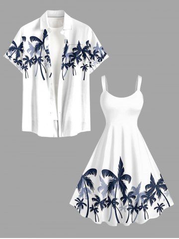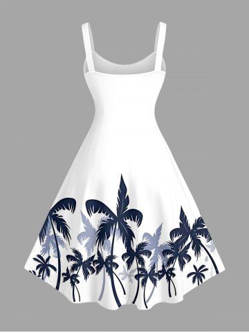 Plus Size Coconut Tree Print Hawaii Tank Dress - White - Xxs