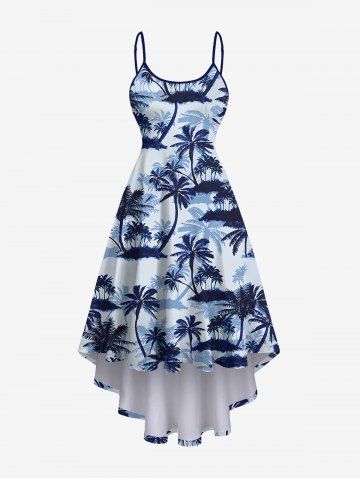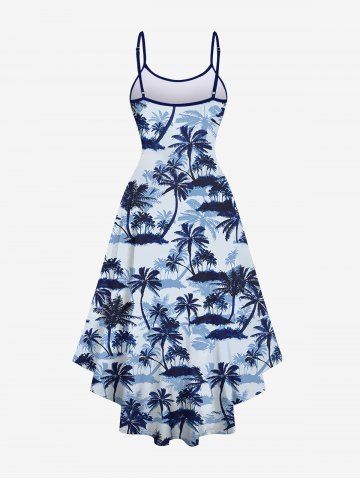 Plus Size Coconut Tree Print High Low Hawaii Cami Dress - Blue - 5x