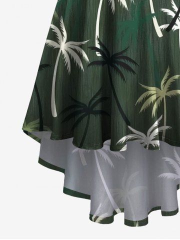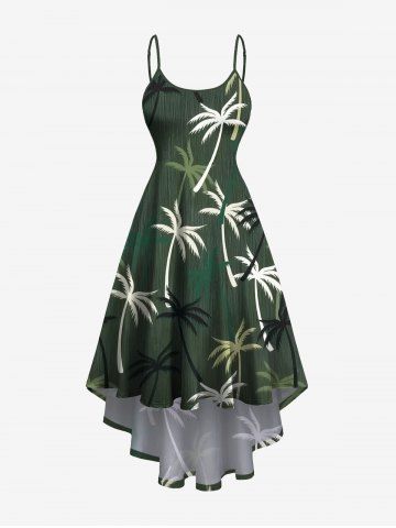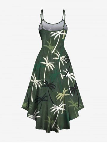 Plus Size Coconut Tree Print High Low Hawaii Cami Dress - Deep Green - S
