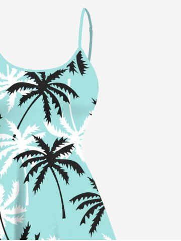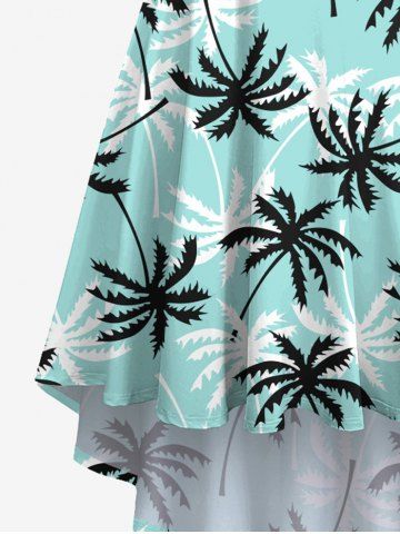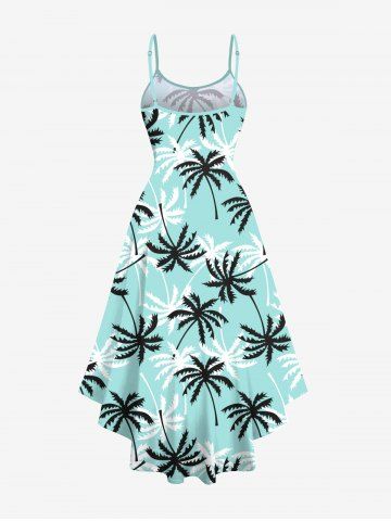 Plus Size Coconut Tree Print High Low Hawaii Cami Dress - Light Green - S