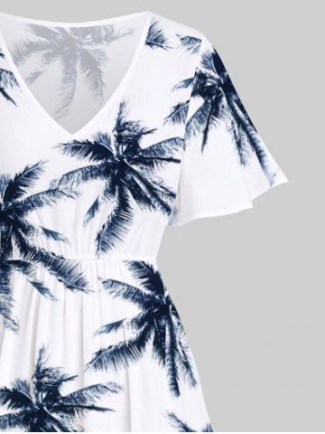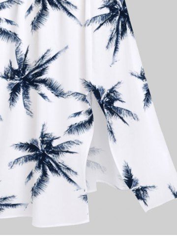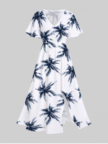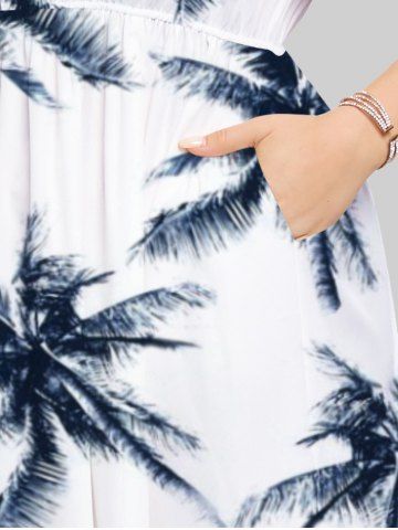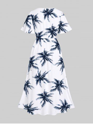 Plus Size Coconut Tree Print Split Hawaii Midi Dress - White - M