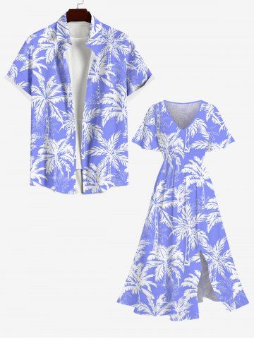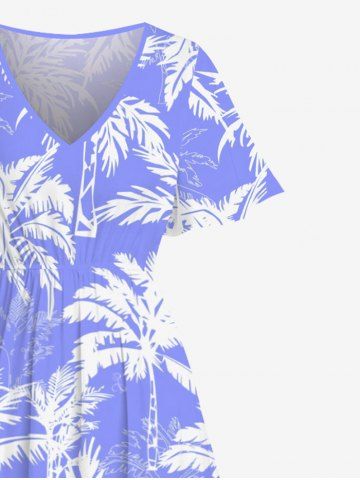 Plus Size Coconut Tree Print Split Hawaii Midi Dress - Blue - M