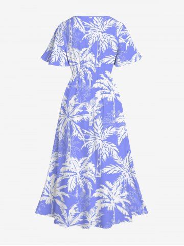 Plus Size Coconut Tree Print Split Hawaii Midi Dress - Blue - 2x