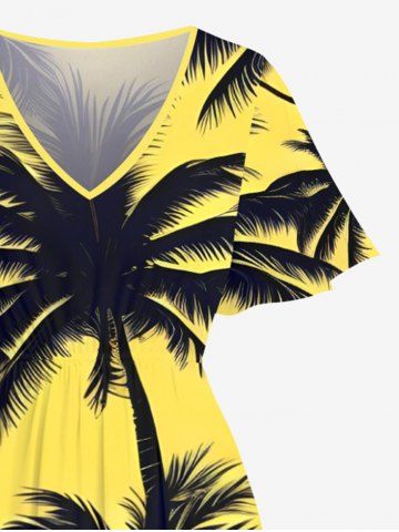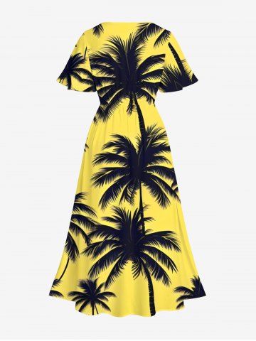 Plus Size Coconut Tree Print Split Hawaii Midi Dress - Yellow - 1x