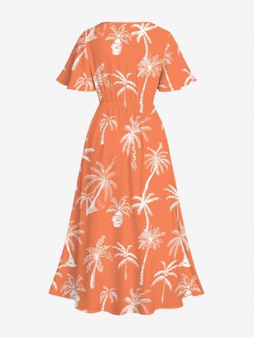 Plus Size Coconut Tree Print Split Hawaii Midi Dress - Orange - 1x