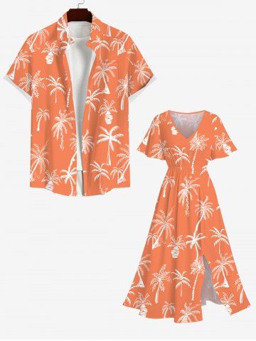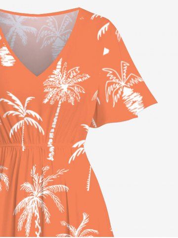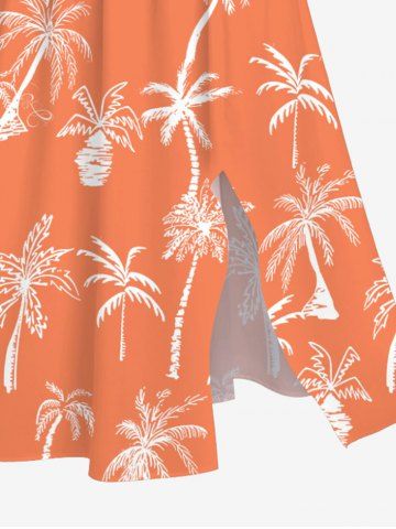 Plus Size Coconut Tree Print Split Hawaii Midi Dress - Orange - 2x