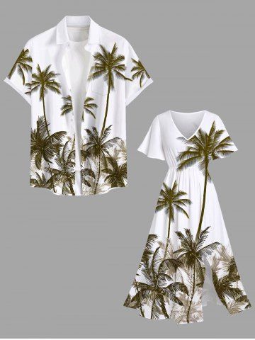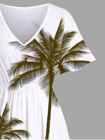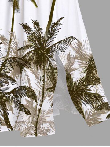 Plus Size Coconut Tree Print Split Hawaii Midi Dress - White - Xs