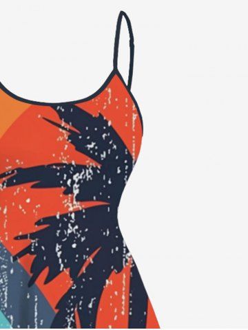Plus Size Coconut Tree Rainbow Colorblock Print Hawaii High Low Asymmetric Cami Dress - Multi-a - M