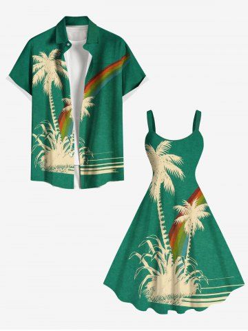 Plus Size Coconut Tree Rainbow Print Hawaii Tank Dress - Green - 3x