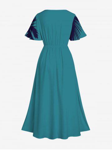 Plus Size Coconut Tree River Print Hawaii Split Pocket A Line Midi Dress - Green - Xs