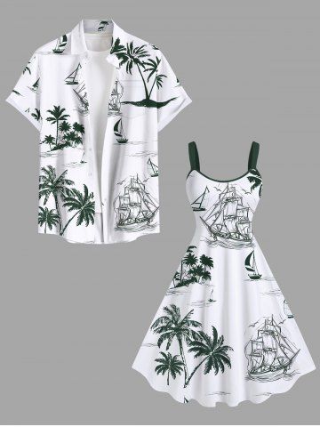 Plus Size Coconut Tree Sailboat Cruise Print Hawaii A Line Tank Dress - White - M