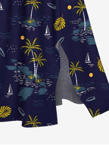 Graphic Dresses > Plus Size Coconut Tree Sailboat Moon Print Split Hawaii Midi Dress