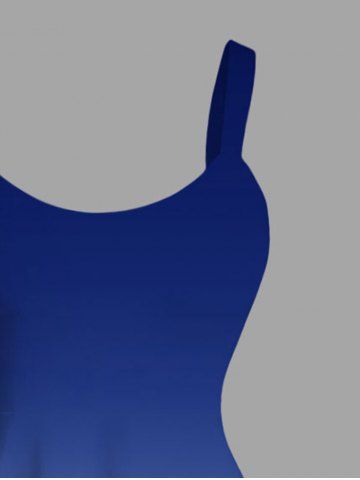 Plus Size Coconut Tree Sailboat Ombre Print Hawaii Tank Dress - Navy Blue - Xs
