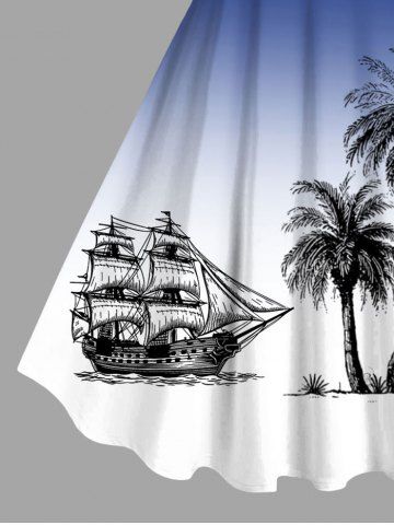 Plus Size Coconut Tree Sailboat Ombre Print Hawaii Tank Dress - Navy Blue - 5x