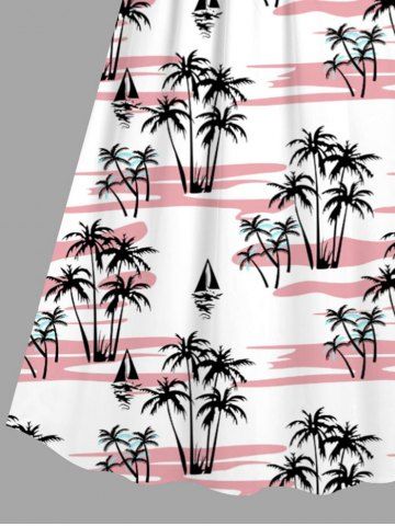 Plus Size Coconut Tree Sailboat Print Surplice Hawaii Cami Dress - Light Pink - 2x