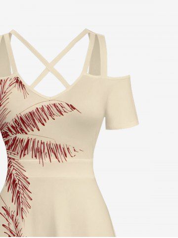 Plus Size Coconut Tree Sailboat Seascape Print Cold Shoulder Crisscross Hawaii Maxi Dress - Light Coffee - 6x