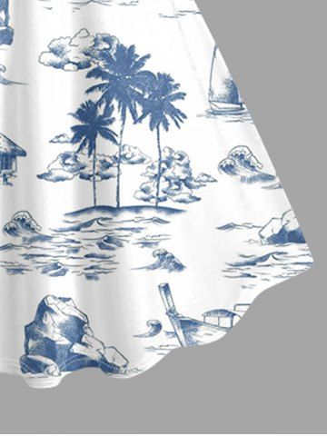Plus Size Coconut Tree Sailboat Stone Print Hawaii Tank Dress - White - S